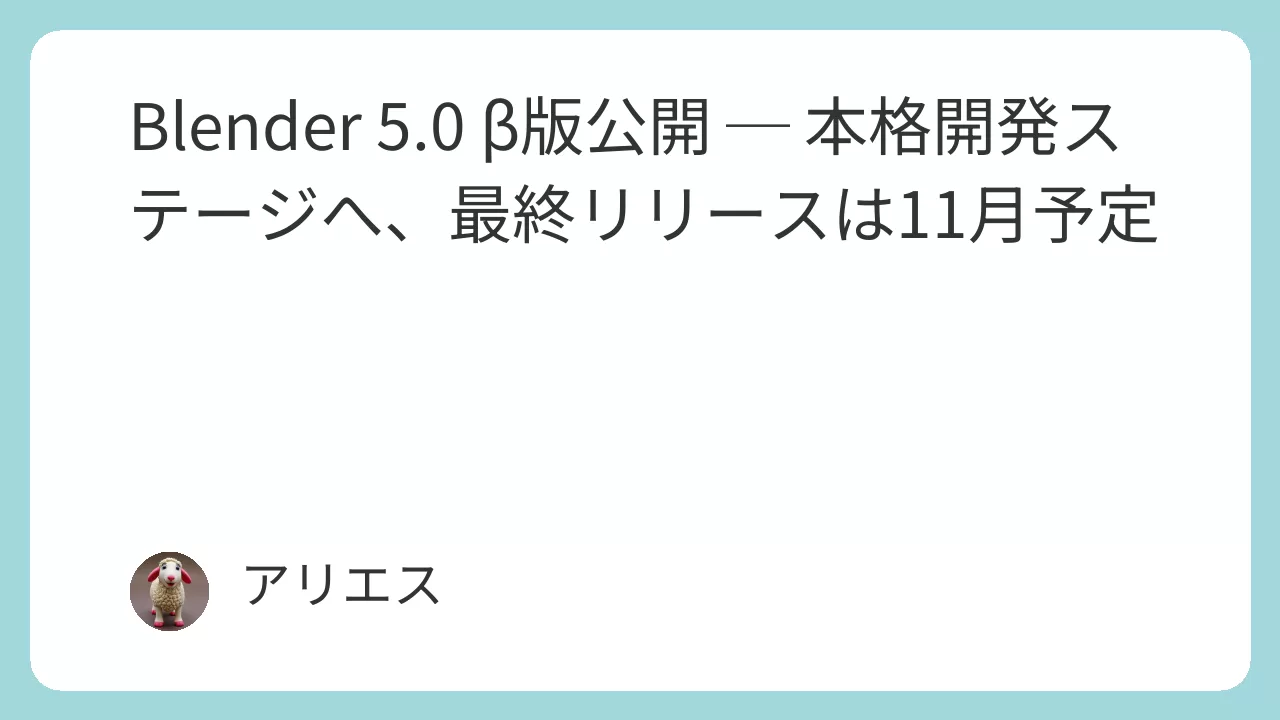 特に、レンダリング技術、ノードシステム、色管理といった中核領域での改良が進むなら、Blender の競争力を他商用ソフトと渡り合える水準に一歩近づけるだろう。β版の安定性と最終版までの開発進捗が、今後の Blender の評価を左右する。