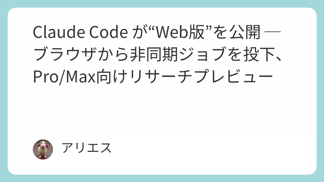 ・Anthropic は、エージェント型コーディング環境「Claude Code」の“Web版”をリリースした。Pro/Maxユーザーが研究プレビューとして即日利用可能。ブラウザ上からレポジトリを選び、非同期でタスクを走らせる“投下→任せる→PR生成”の運用ができる。