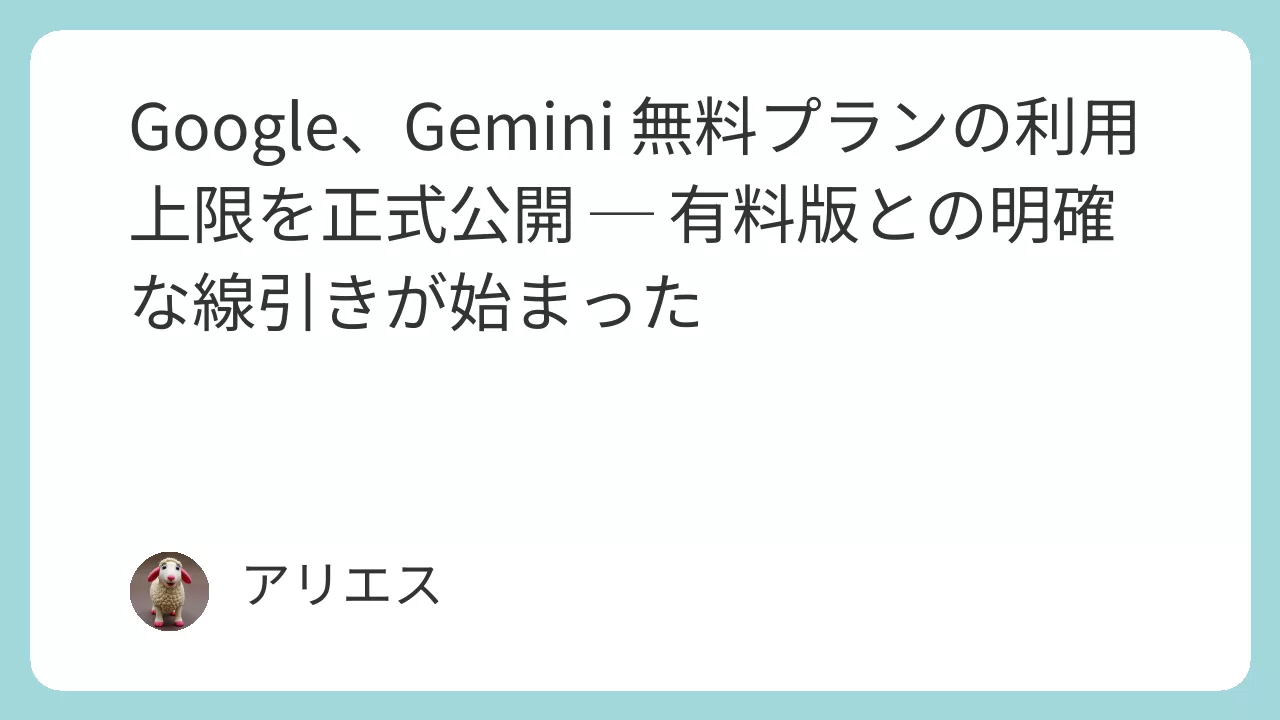 Google Gemini 無料版の上限公開は、「安心して使える範囲」を可視化した最初の一歩だ。