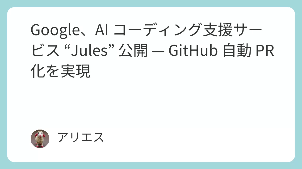 Google、AI コーディング支援サービス “Jules” 公開 — GitHub 自動 PR 化を実現