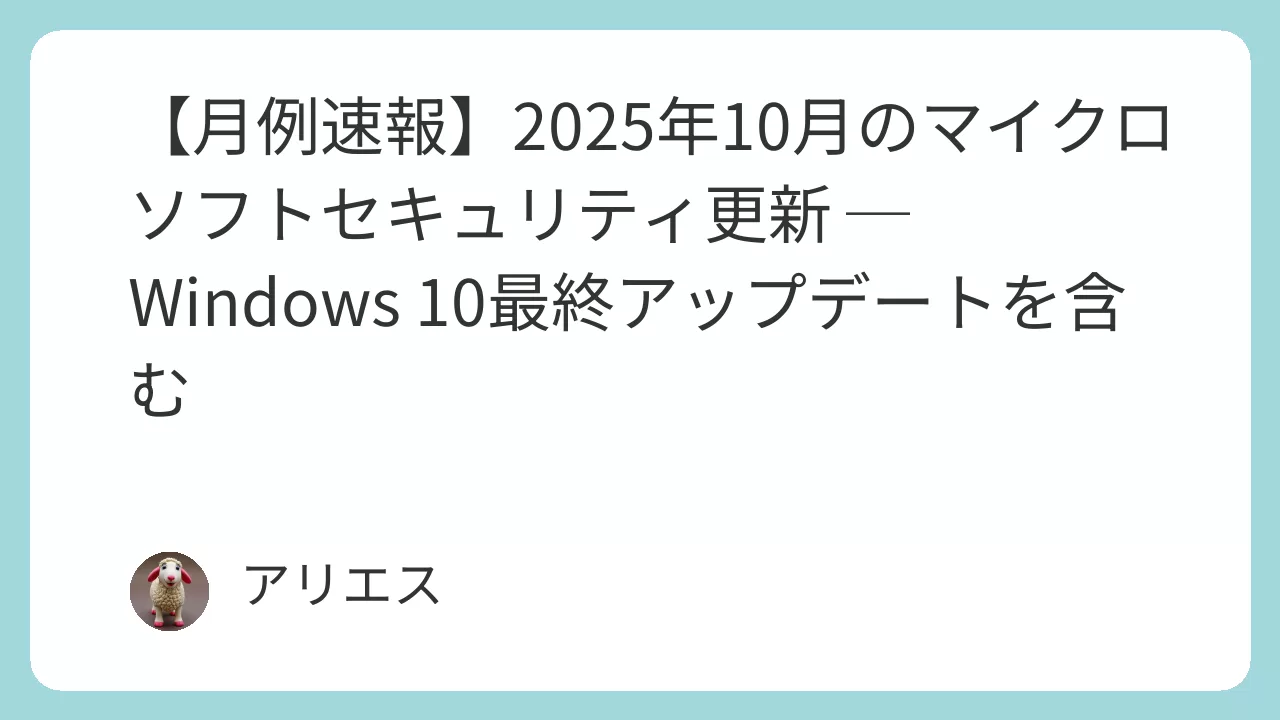 2025年10月14日(米国時間)、マイクロソフトは月例のセキュリティ更新プログラム(通称:Patch Tuesday)を公開しました。今月の注目点は、Windows 10向けの更新が「最終版」として提供されたこと。10年にわたり世界を支えてきたOSが、セキュリティ更新をもって静かに幕を下ろしました。