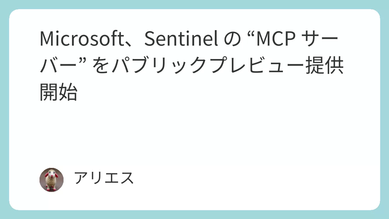 2025年9月30日(米国時間)、Microsoft は公式ブログにおいて、Microsoft Sentinel 向けに「Model Context Protocol (MCP) サーバー」を導入することを発表し、パブリックプレビュー提供を開始した。