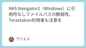 NAS Navigator2 (Windows) における引用符で囲まれていないファイルパスの脆弱性とその対処方法(JVN#69099112)のコンテンツをご紹介。