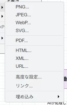 - 出力フォーマットは PNG / SVG / PDF / XML まで一通り揃う