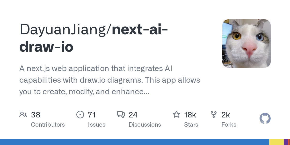 GitHub - DayuanJiang/next-ai-draw-io: A next.js web application that integrates AI capabilities with draw.io diagrams. This app allows you to create, modify, and enhance diagrams through natural language commands and AI-assisted visualization.