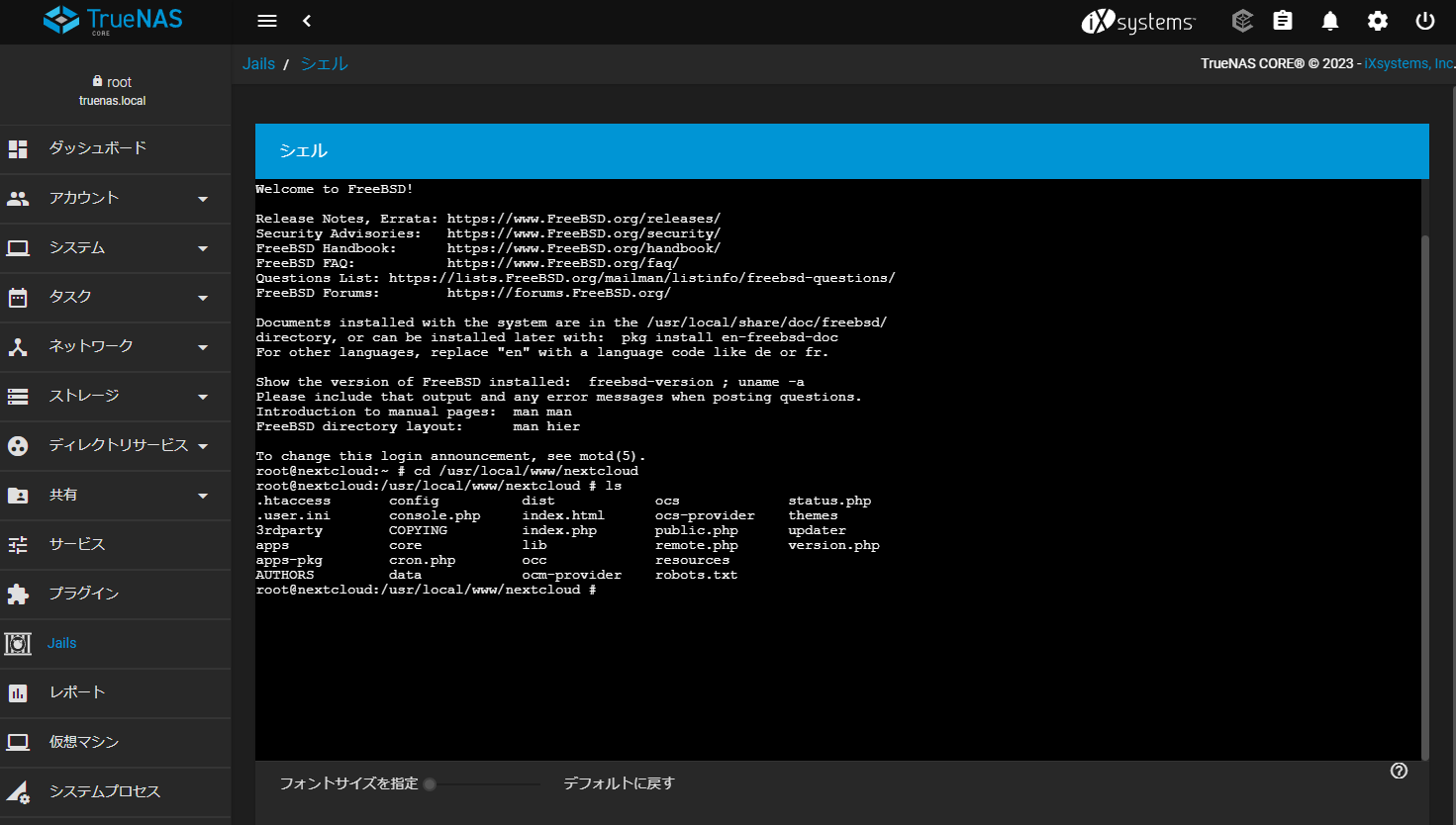TrueNAS CORE 上の Jail で動く Nextcloud のシェルに直接アクセス