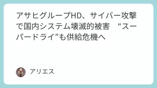 TECH アサヒグループHD、サイバー攻撃で国内システム壊滅的被害 “スーパードライ”も供給危機へ アサヒグループホールディングス株式会社は、2025年9月29日より実行されたとみられるサイバー攻撃の影響で、国内グループの基幹システムに大規模な障害が発生していることを明らかにした。受注・出荷、コールセンター業務は停止中で、復旧の見通しはい... 2025.10.03 TECH