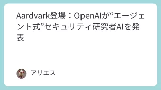 TECH Aardvark登場:OpenAIが“エージェント式”セキュリティ研究者AIを発表 OpenAIが新たに発表したAIエージェント「Aardvark」は、ソースコードの脆弱性を自動で検出・修正提案する“セキュリティ研究者AI”。プライベートβ版として稼働を開始し、防御側がAIで先手を取る新時代の幕開けを告げる。 2025.10.31 TECH