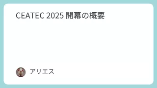 TECH CEATEC 2025 開幕の概要 CEATEC 2025が幕張メッセで開幕。空中映像「Ciel Vision」やZINNSIAなど、AI・センシング・触覚UIが融合する次世代技術が続々登場。注目ブース5選を速報で紹介。 2025.10.15 TECH