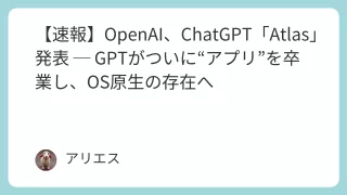 【速報】OpenAI、ChatGPT「Atlas」発表 ─ GPTがついに“アプリ”を卒業し、OS原生の存在へ