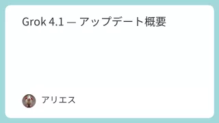 TECH Grok 4.1 — アップデート概要 xAIが「Grok 4.1」を正式リリース。画像理解・推論・コーディング性能が大幅強化され、毒舌AIの個性を保ちながら実務AIとしての使いやすさが向上。Gemini 3・GPT-5.1との比較でも注目のアップデート。 2025.11.19 TECH