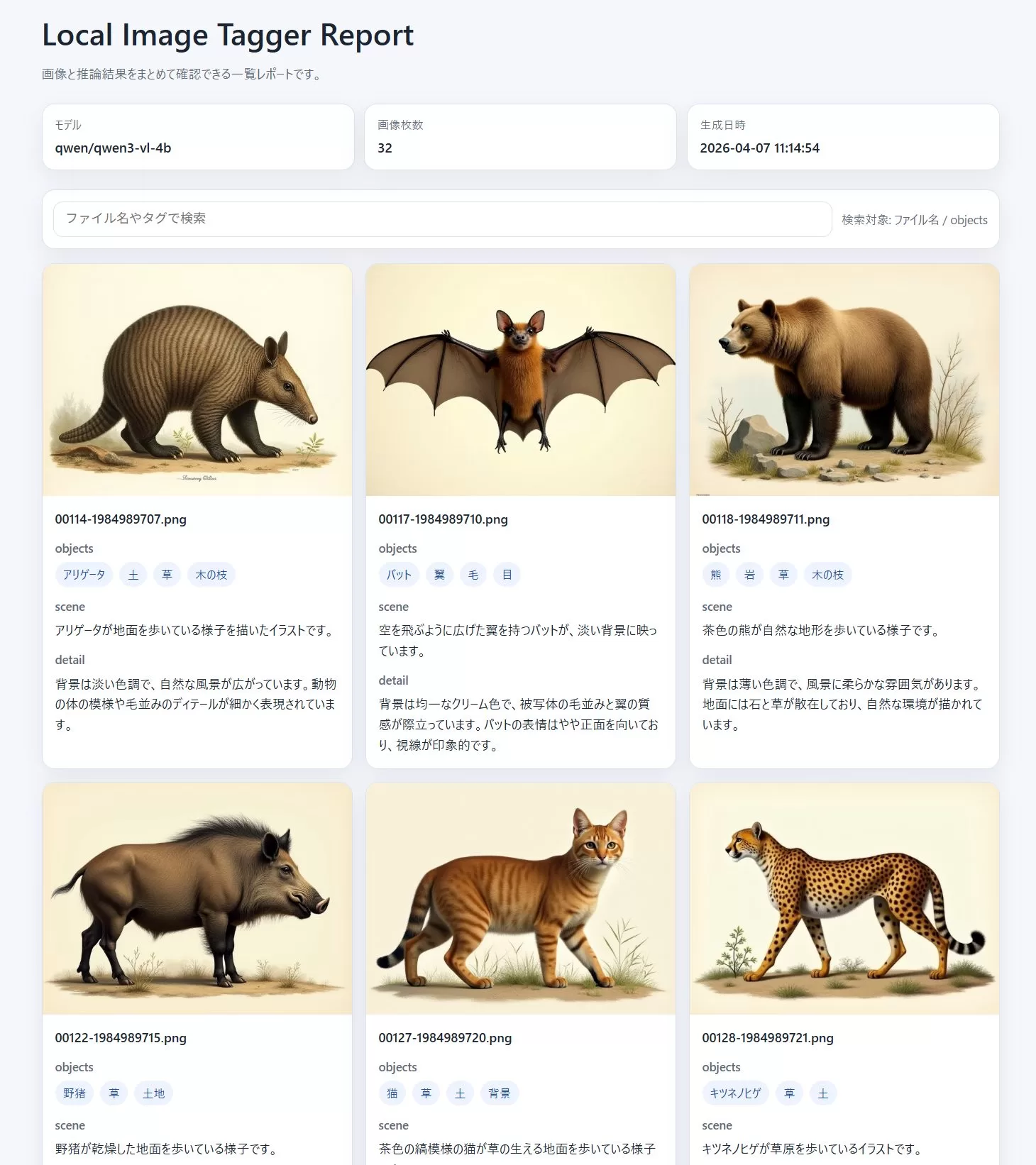 AIがタグ・説明文・一覧レポートを自動生成できるローカルツールです。